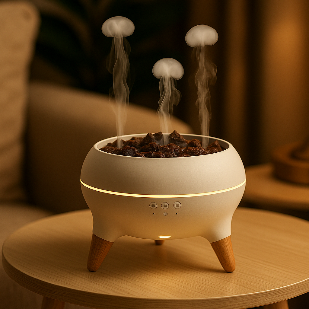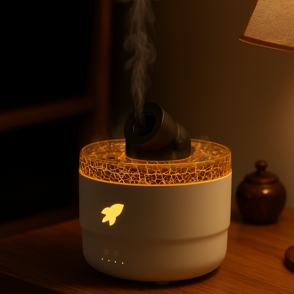 Immerse yourself in the captivating power of the AquaCanon. Gentle streams of mist burst forth like a glowing water cannon, soothing your senses, refreshing the air, and elevating your atmosphere with a striking display of light and vapor.
